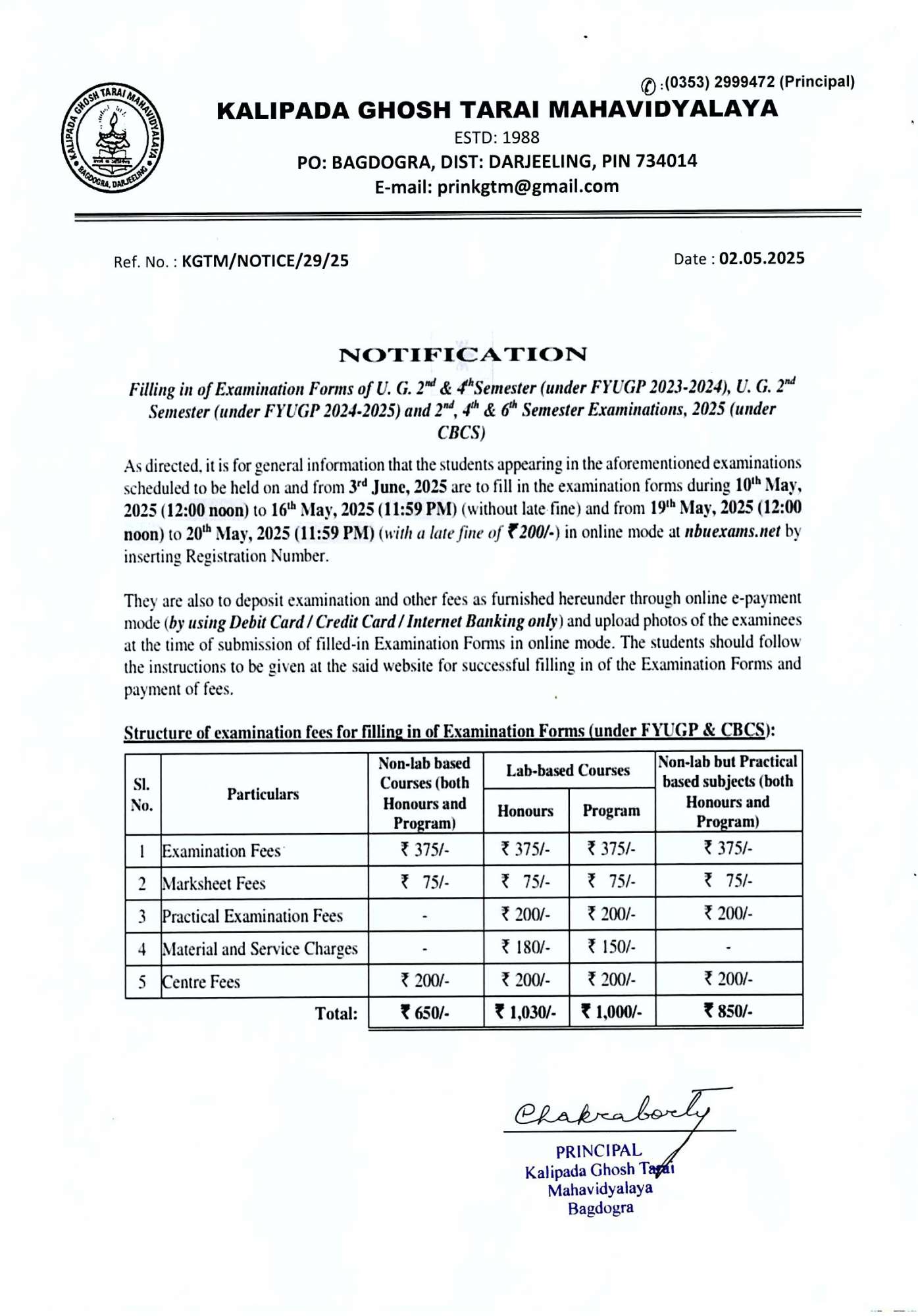 Exam Form Fill up Notice for 2nd, 4th & 6th Sem Exam 2025