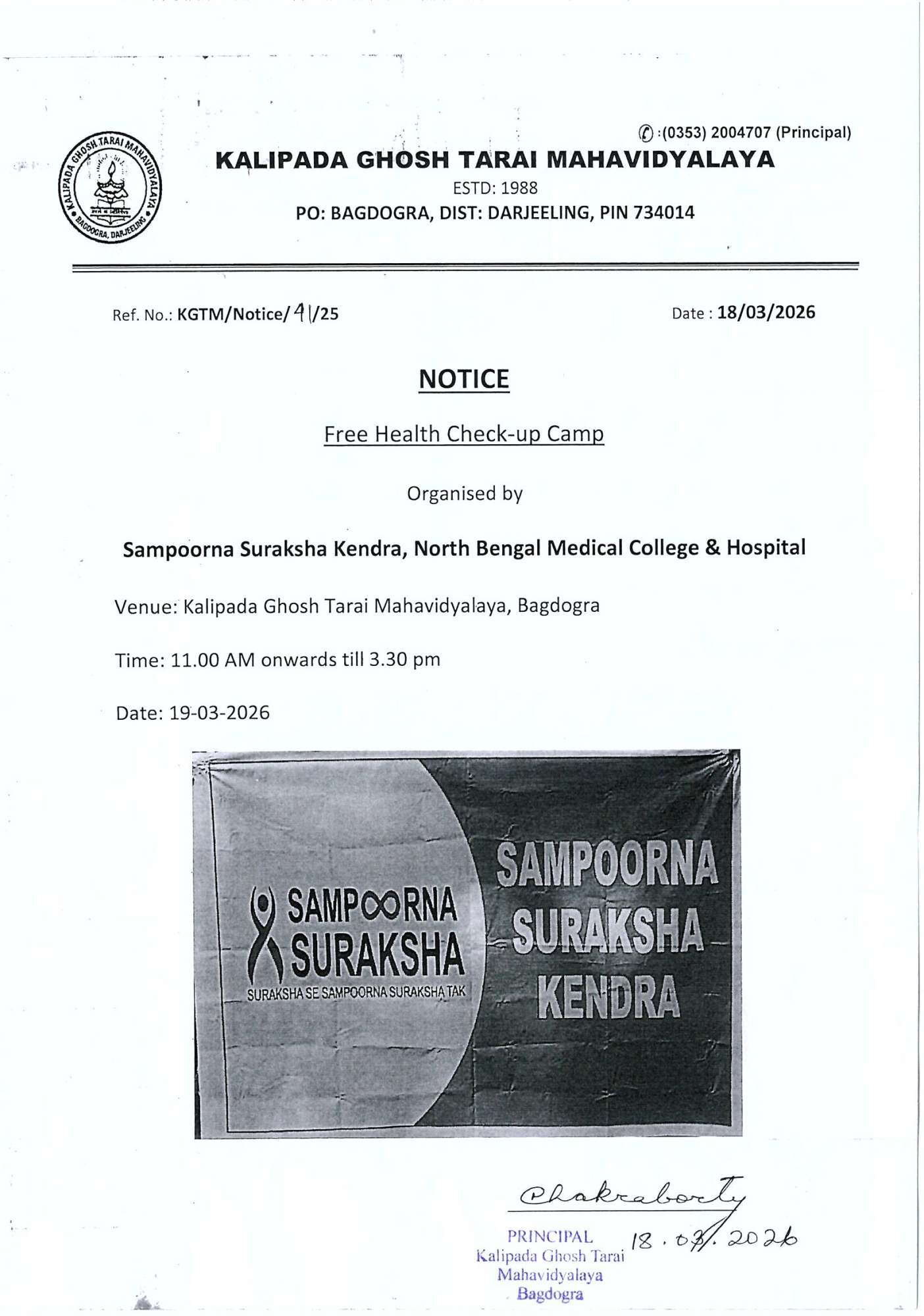 Kalipada Ghosh Tarai Mahavidyalaya, P.O. Bagdogra, Dist. Darjeeling, West Bengal, India-734014