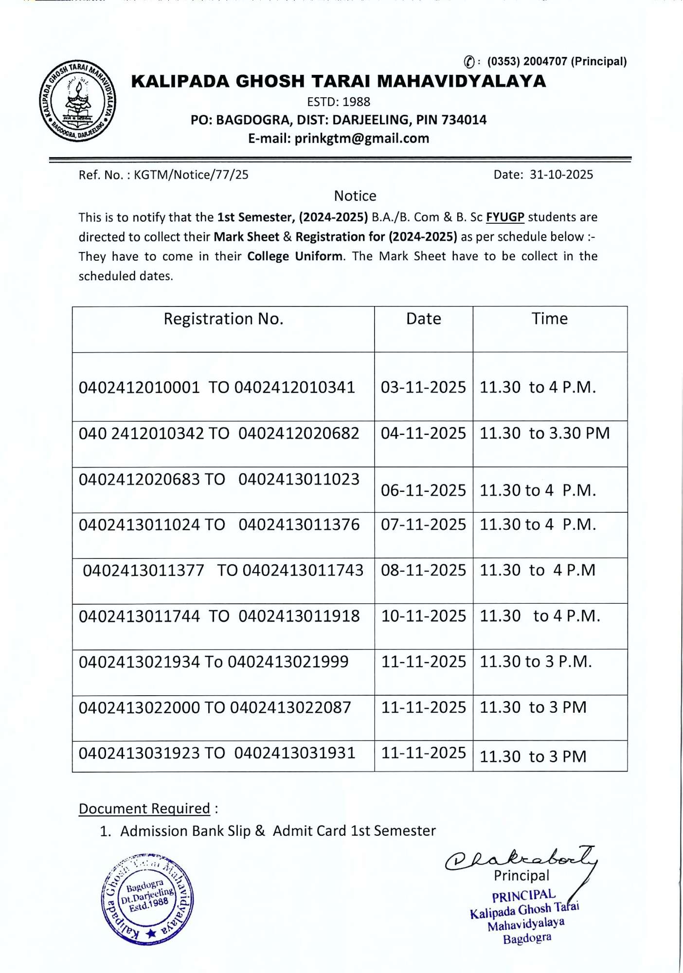 Kalipada Ghosh Tarai Mahavidyalaya, P.O. Bagdogra, Dist. Darjeeling, West Bengal, India-734014