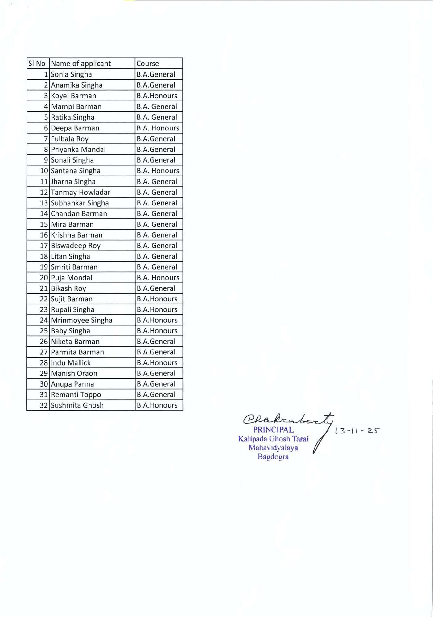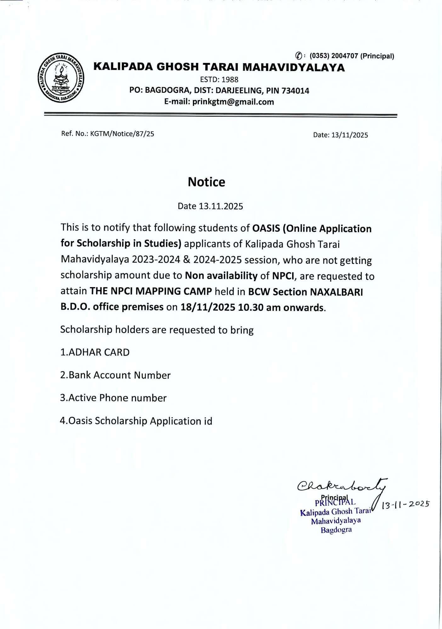 Kalipada Ghosh Tarai Mahavidyalaya, P.O. Bagdogra, Dist. Darjeeling, West Bengal, India-734014