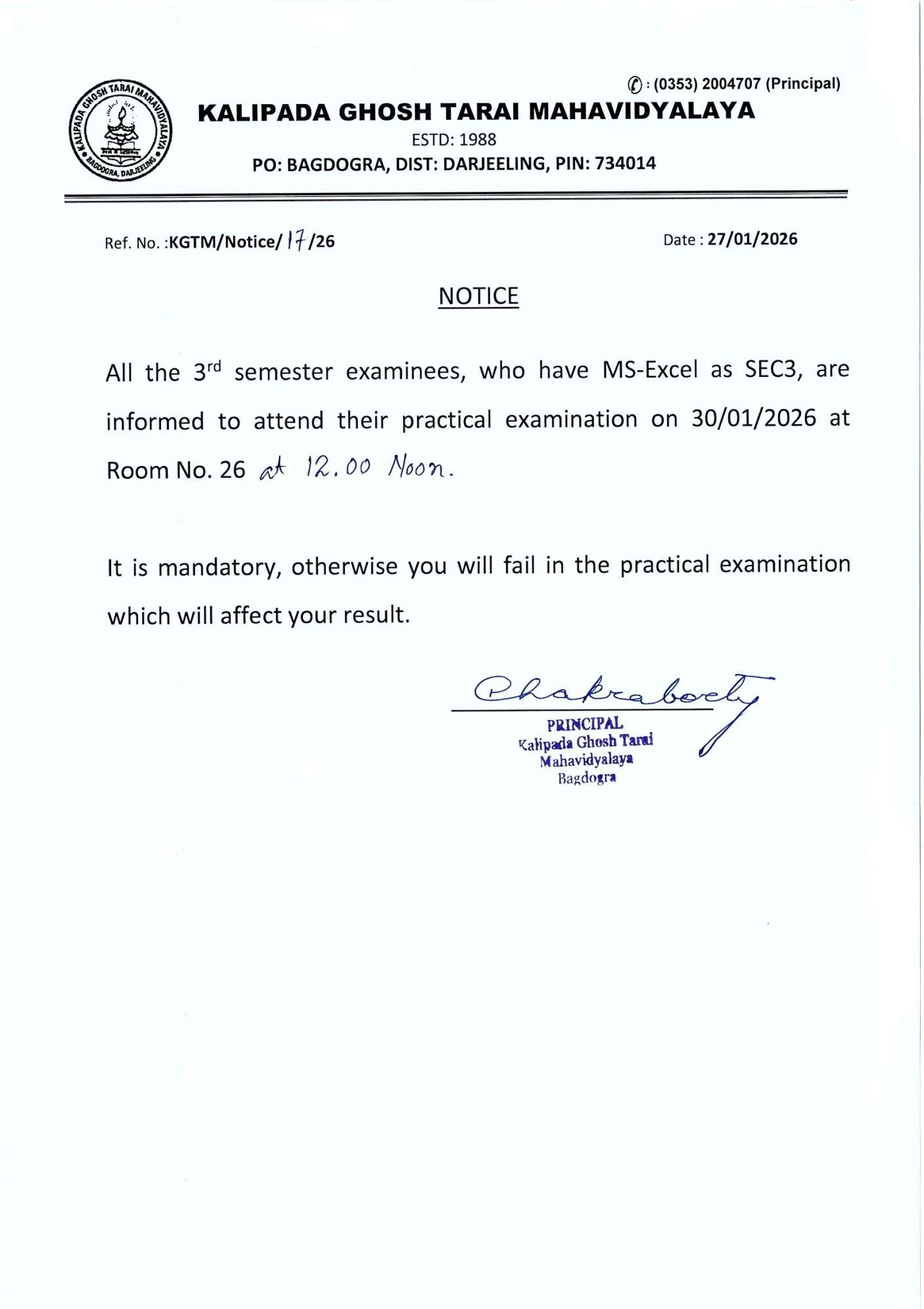 Kalipada Ghosh Tarai Mahavidyalaya, P.O. Bagdogra, Dist. Darjeeling, West Bengal, India-734014