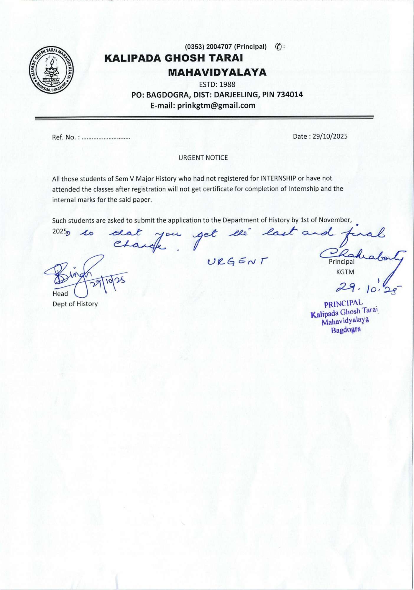 Kalipada Ghosh Tarai Mahavidyalaya, P.O. Bagdogra, Dist. Darjeeling, West Bengal, India-734014