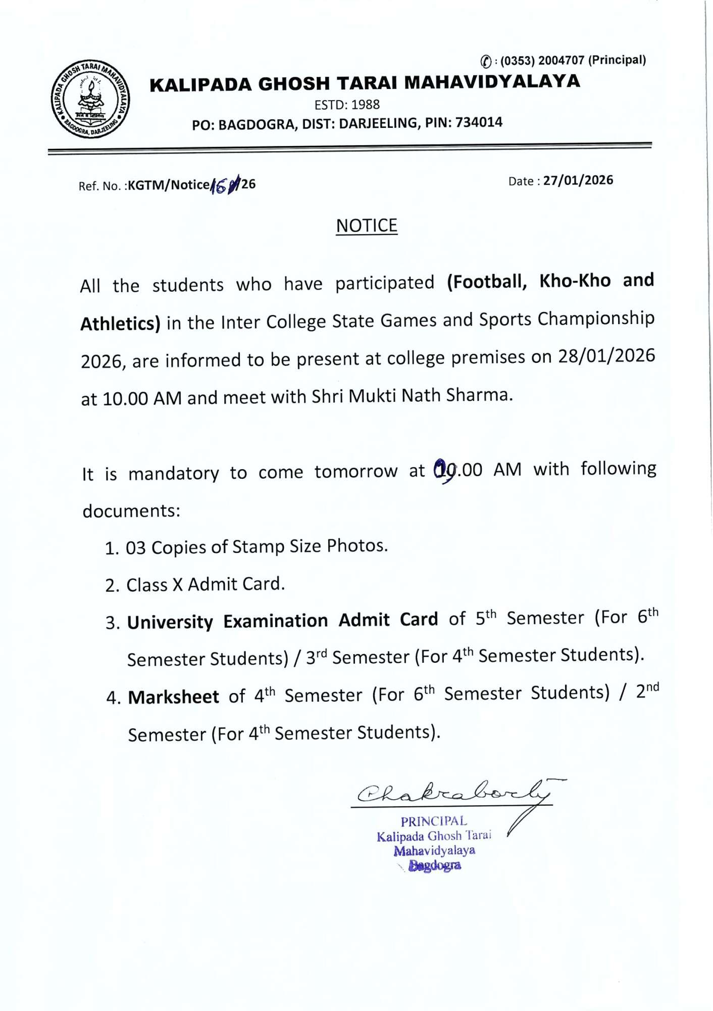 Kalipada Ghosh Tarai Mahavidyalaya, P.O. Bagdogra, Dist. Darjeeling, West Bengal, India-734014