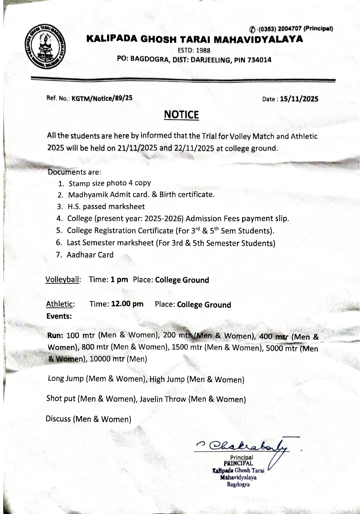 Kalipada Ghosh Tarai Mahavidyalaya, P.O. Bagdogra, Dist. Darjeeling, West Bengal, India-734014