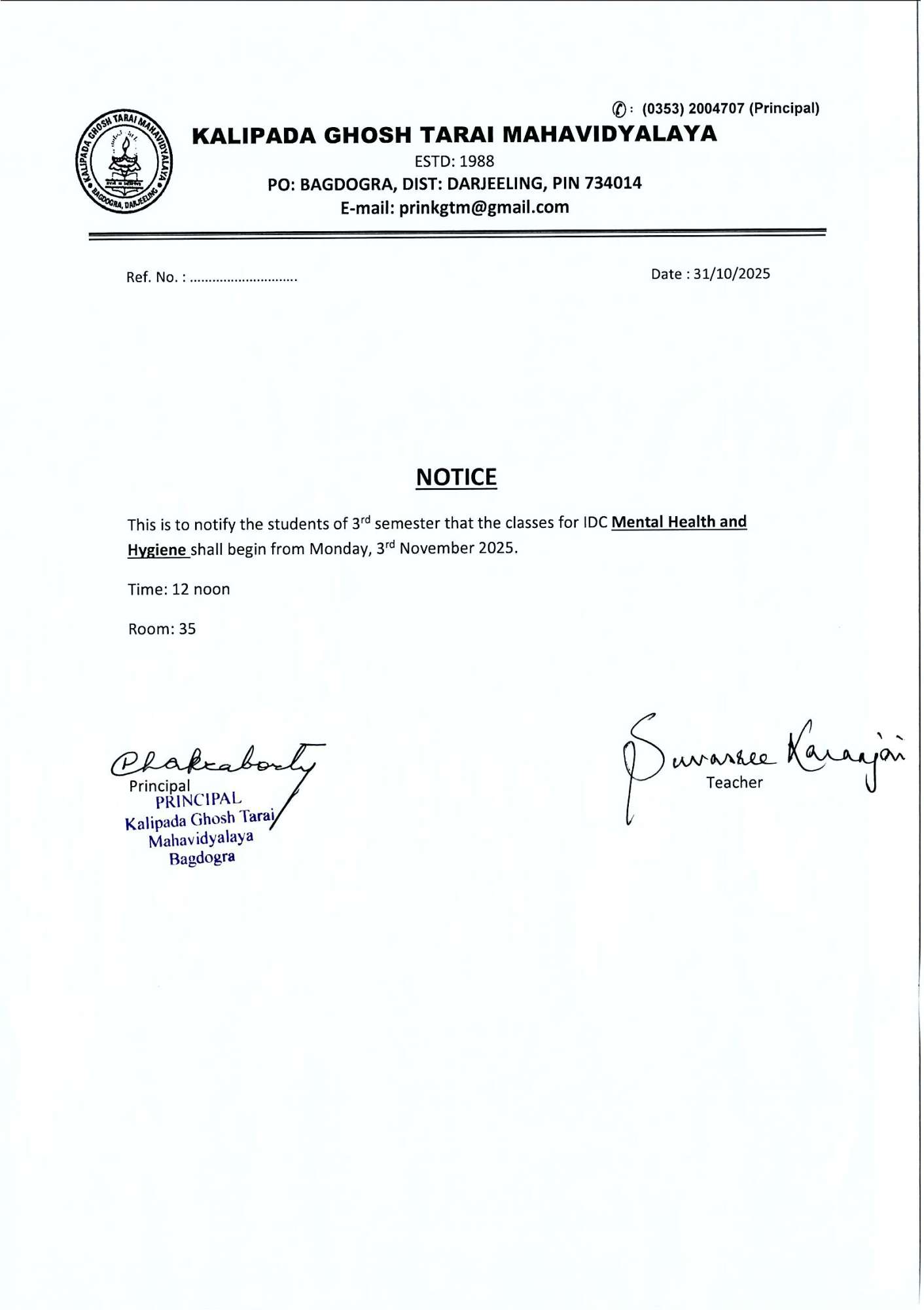 Kalipada Ghosh Tarai Mahavidyalaya, P.O. Bagdogra, Dist. Darjeeling, West Bengal, India-734014