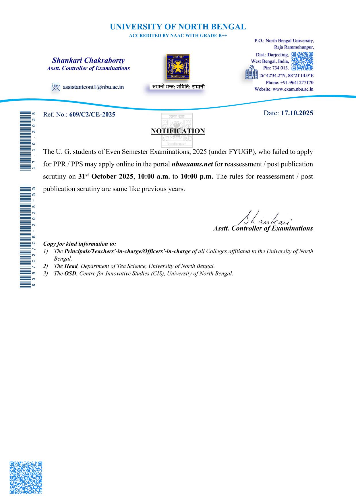 This college is now a study center of Netaji Subhas Open University (NSOU) for Post Graduation (Master Degree) and also Under Graduation (UG - Graduation Degree).