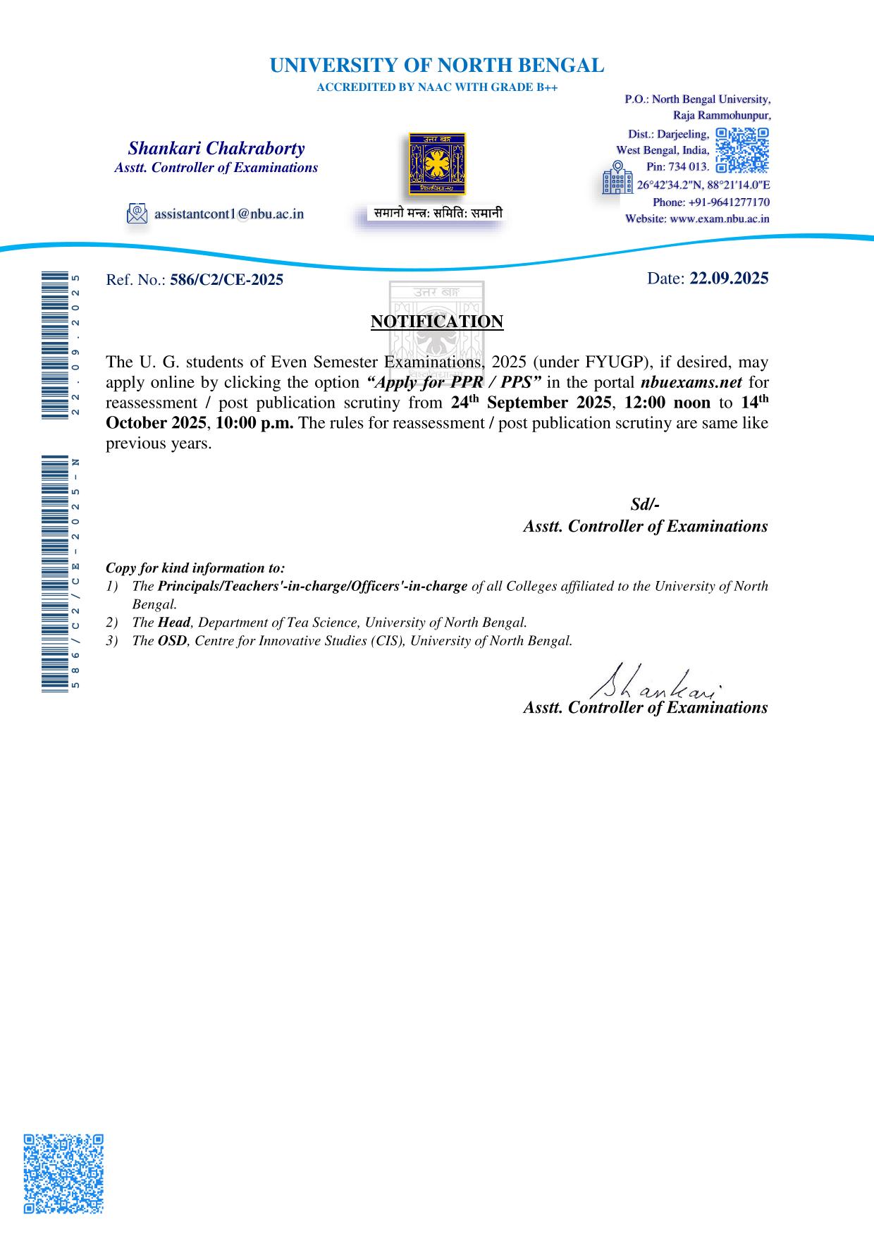 PPR / PPS application for FYUGP 2nd & 4th Sem Result