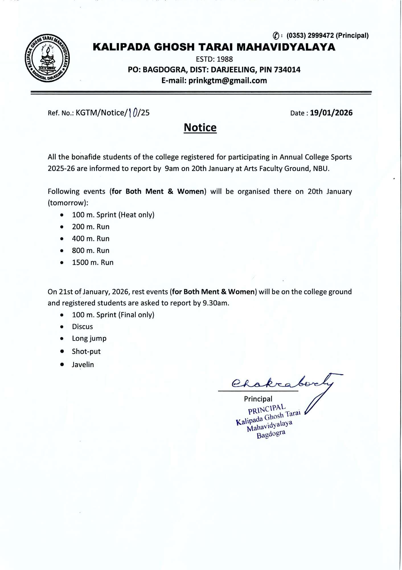 Kalipada Ghosh Tarai Mahavidyalaya, P.O. Bagdogra, Dist. Darjeeling, West Bengal, India-734014