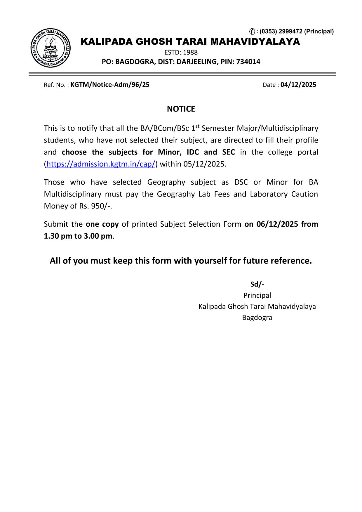 Kalipada Ghosh Tarai Mahavidyalaya, P.O. Bagdogra, Dist. Darjeeling, West Bengal, India-734014